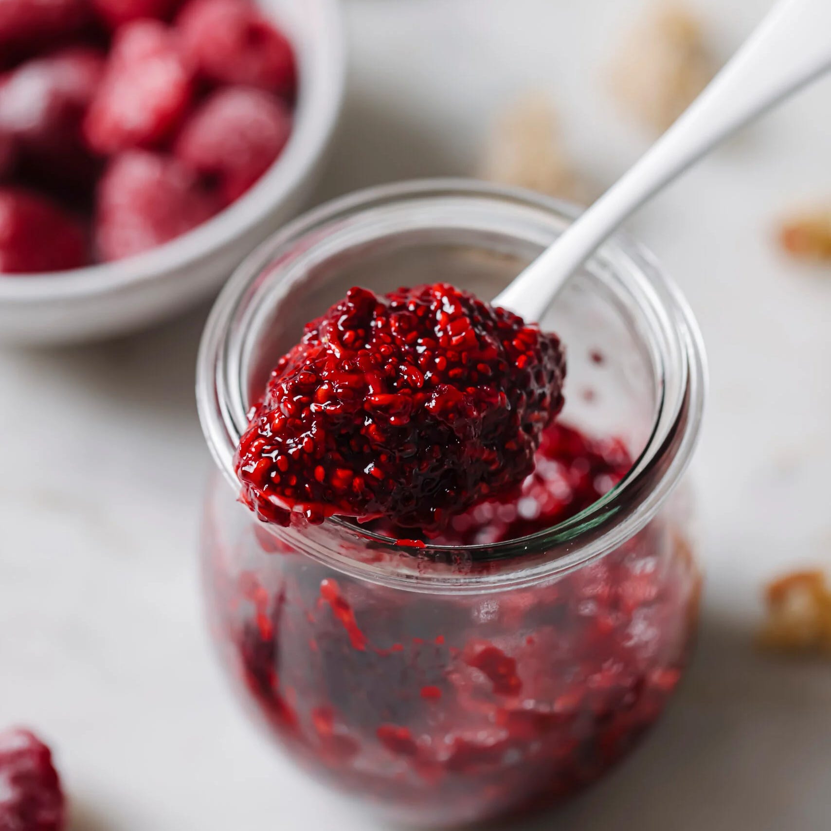 Raspberry chia jam: Every week I make a batch of homemade chia raspberry jam that’s less sweet and more flavorful than store-bought preserves. I put a 10 oz. bag of frozen raspberries in a saucepan and let it reduce to mush (about 10 minutes), then I stir in a tablespoon of honey and 2 tablespoons chia seeds. PB&Js get a major taste upgrade, especially paired with Trader Joe’s salted crunch almond butter.